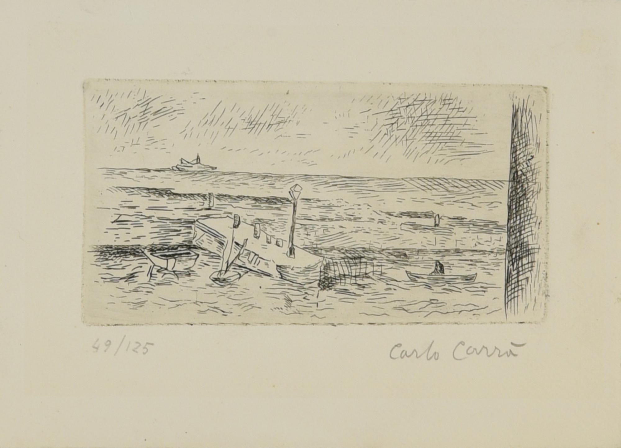 Carlo Carrà MARINA acquaforte, cm 6,7x12,5, su foglio cm 12,5x17; es. 49/125...