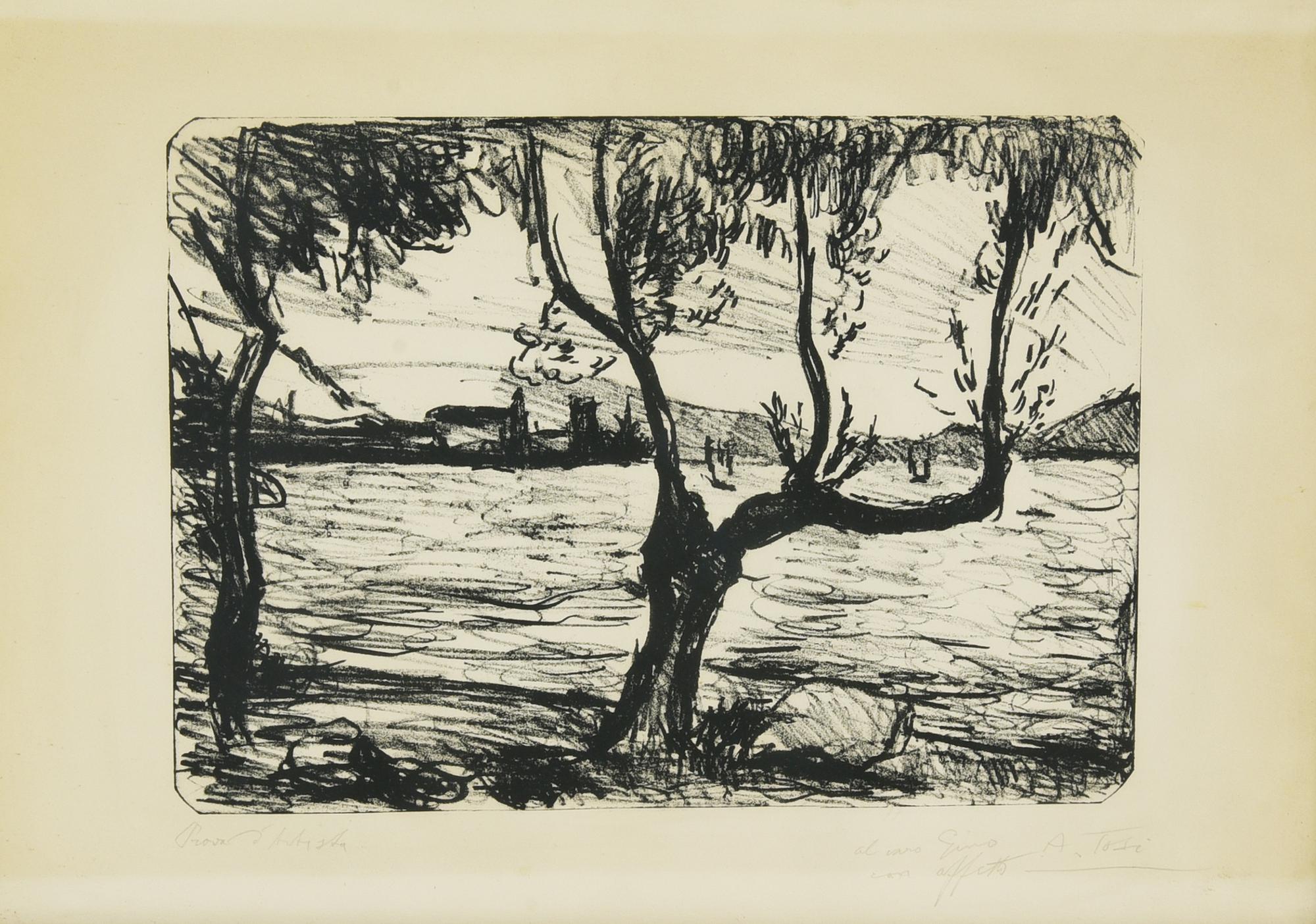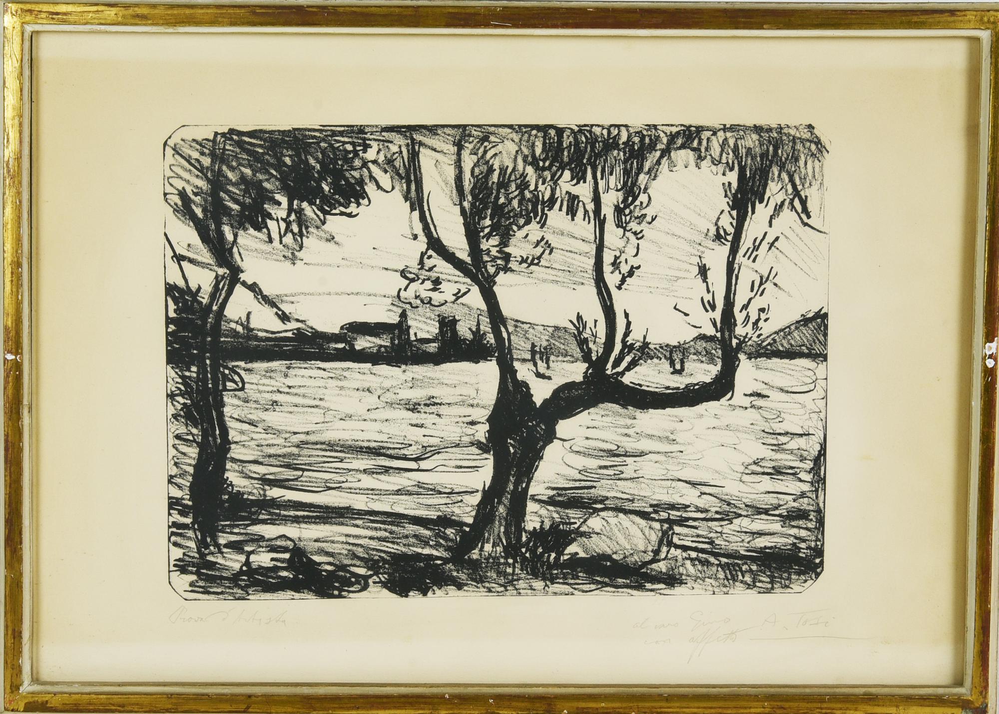 Arturo Tosi PAESAGGIO litografia, cm 35x50, es. P.A. firma, tiratura e dedica...