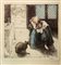 Alfredo Müller (1869-1940). La petite fille au chat. 1897. Acquaforte e...