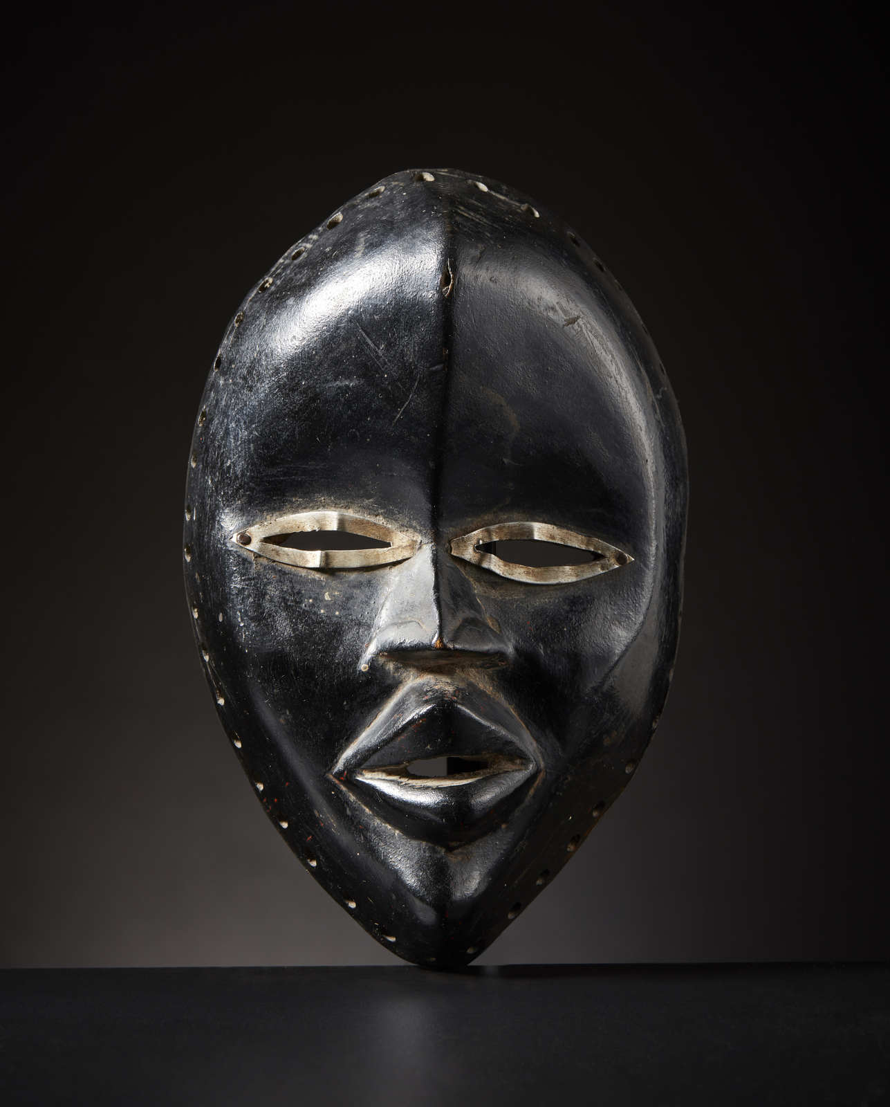 Lotto 4 | Arte africana - Costa d Avorio/Liberia - Dan Maschera Legno duro a patina lucida, pigmento nero e metallo. Segni d'uso. .
