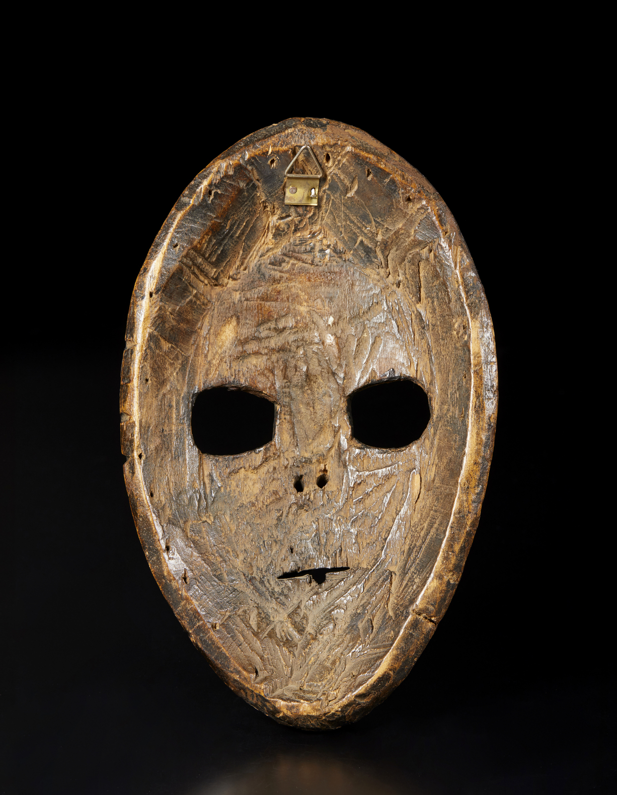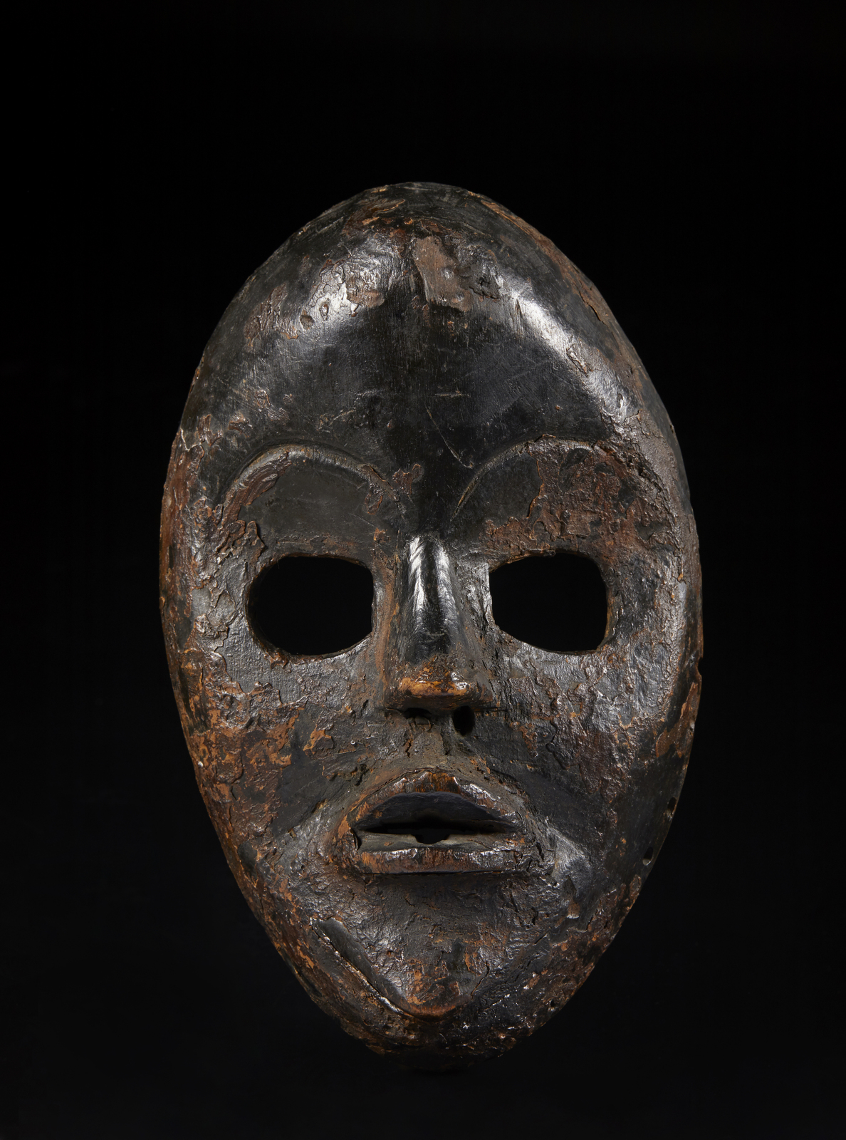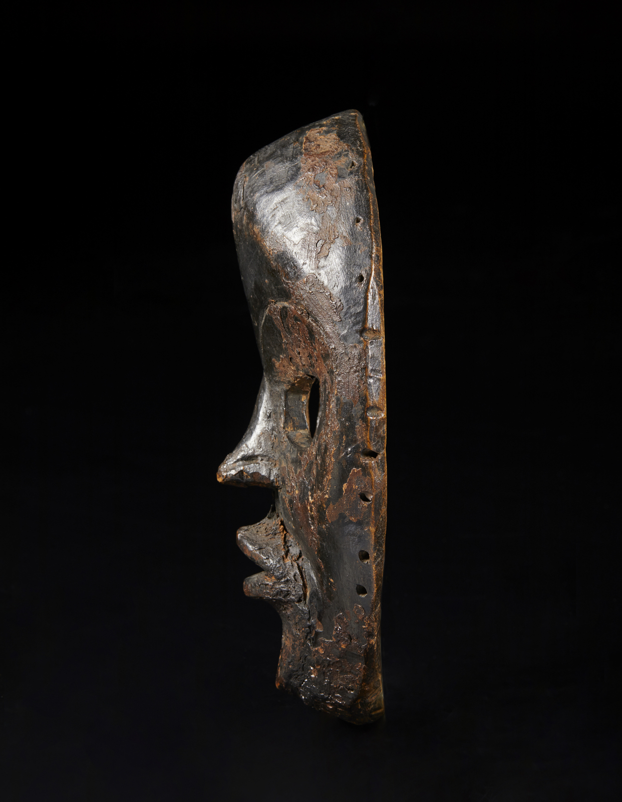 Segni d'uso. . Cm 14,00 x 22,50 x 6,00. Affascinante maschera Dan del tipo Gunye Ge, con occhi tondi, fronte ampia, naso e bocca proporzionati nel più puro stile Dan, caratterizzata da una diffusa e crostosa patina che le conferisce un aspetto particolarmente espressivo.
