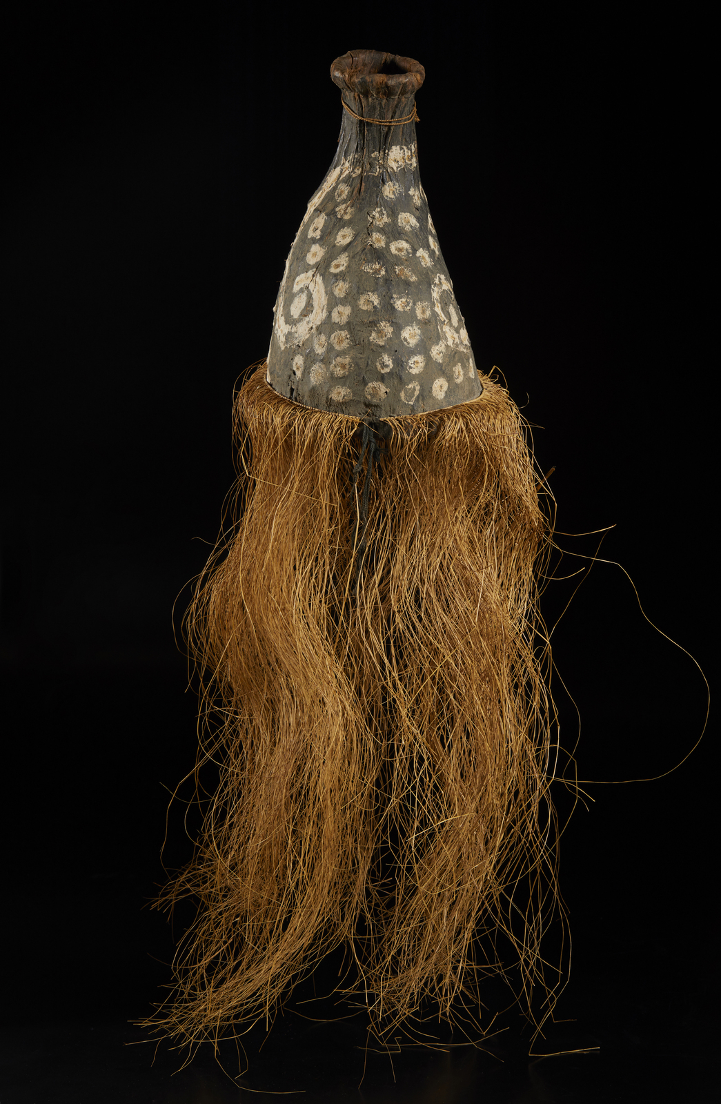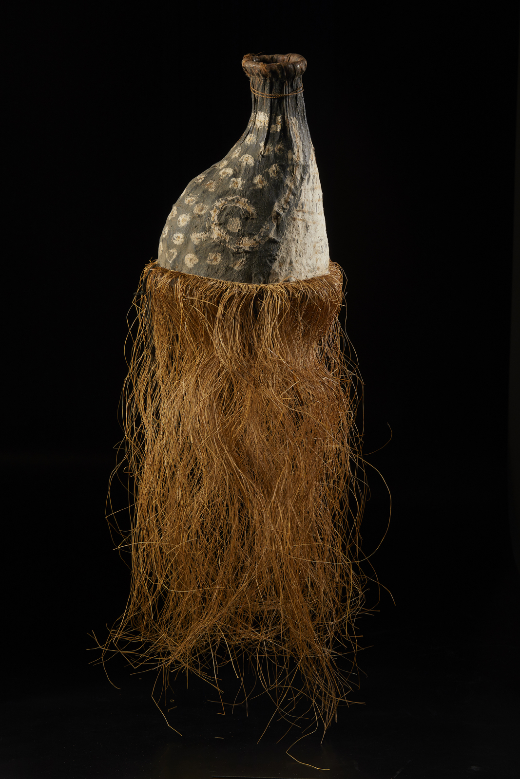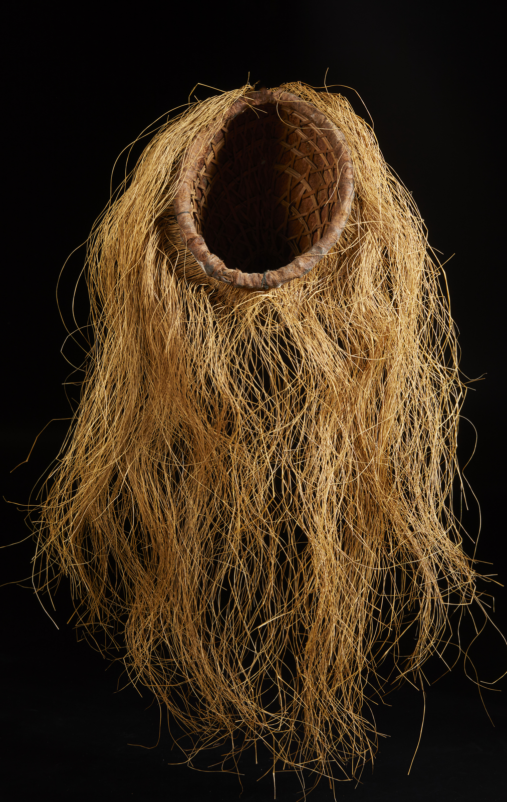 Raro e fragile, costruito con rami, fibre e corteccia ed originariamente arricchito sulla sommità con lunghe piume colorate, questo copricapo è testimonianza visiva della sensibilità artistica e di una cultura preziosissima che si perpetua da millenni nei popoli indigeni dell'amazzonia oramai, purtroppo, sulla via dell' estinzione.