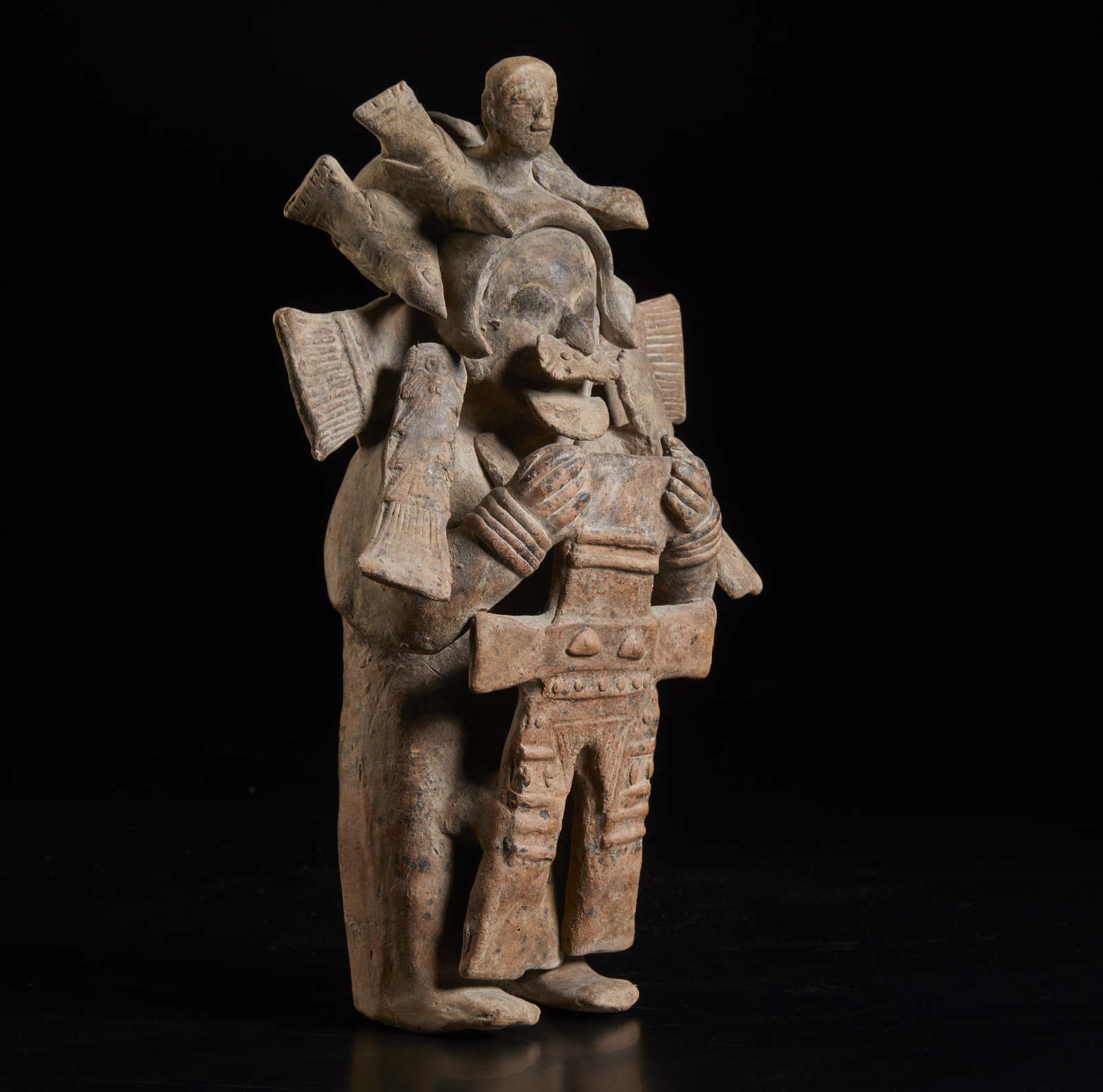 Arte dell'America del Sud - Ecuador - Jama - Coaque. Rara scultura antropomofra in terracotta di Tsansero (riduttore di teste). 300 a.C. - 800 d.C.