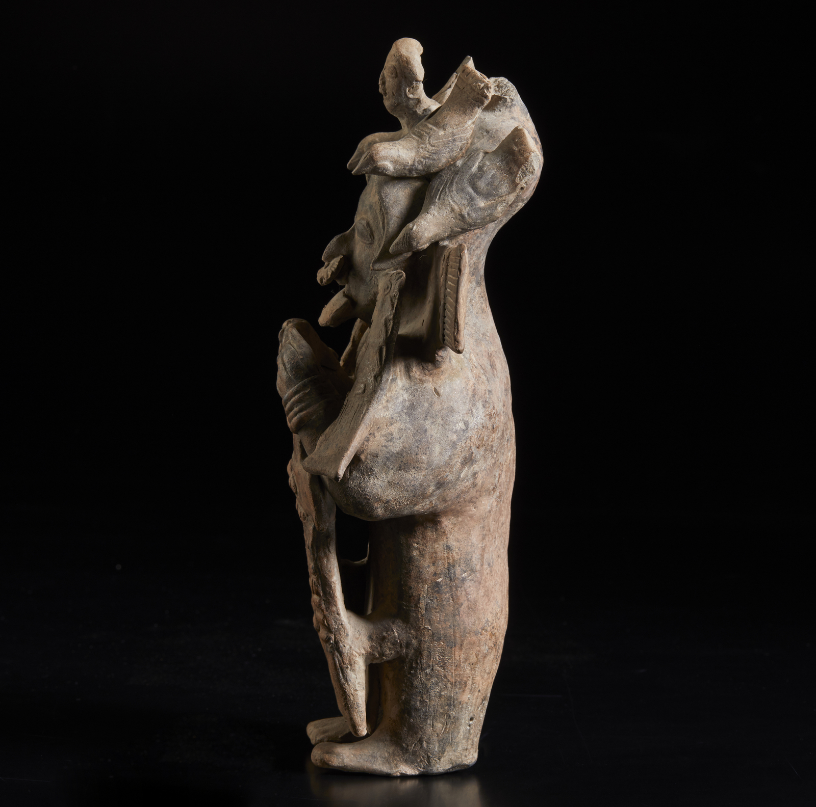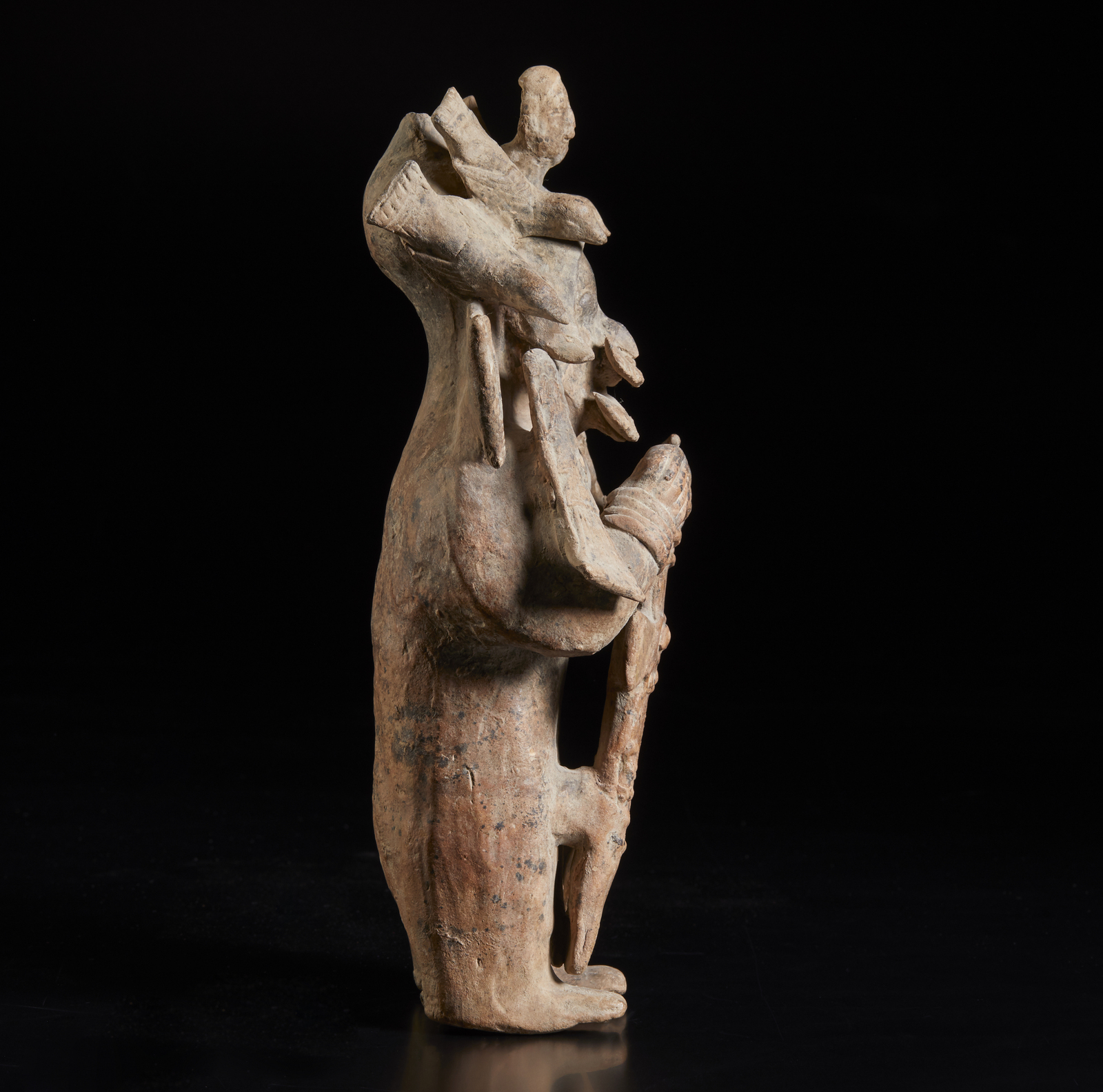 Rara scultura antropomofra in terracotta di Tsansero (riduttore di teste).
