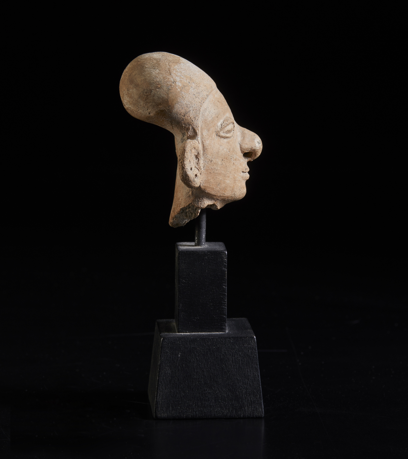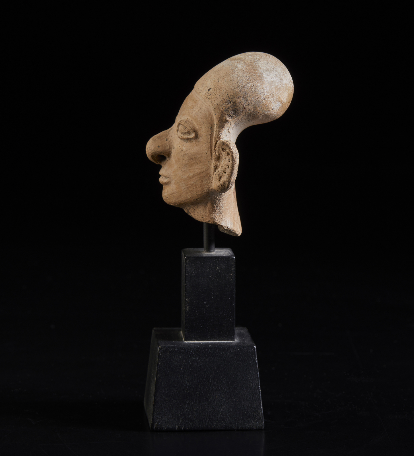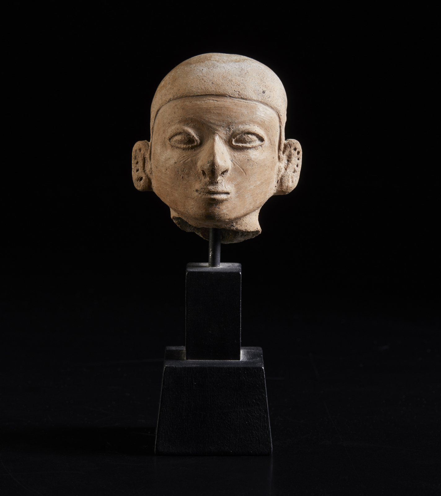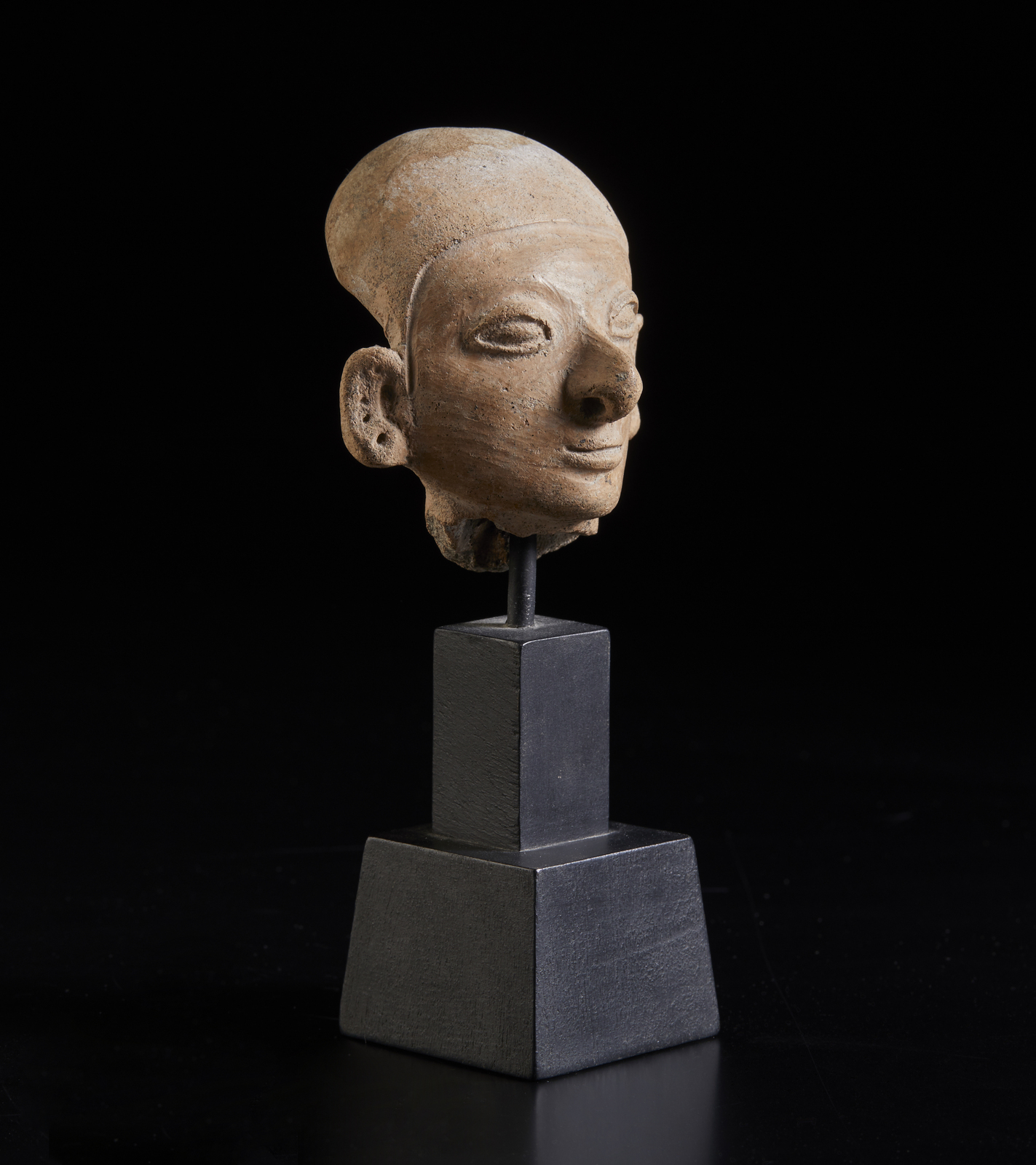 Arte dell'America del Sud - Ecuador - La Tolita. Testina antropomorfa in terracotta. 500 a.C. - 500 d.C.