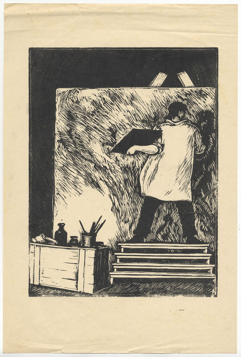 Francesco Nonni (1885-1975). Il pittore. 1924/25. Xilografia. mm 250x190....