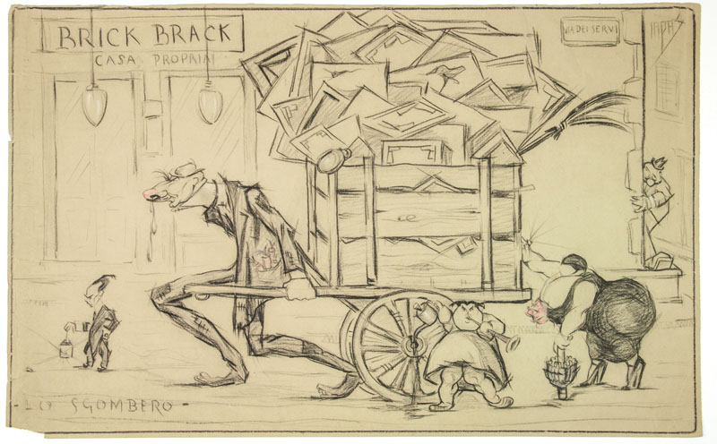 Italo Amerigo Passani (1882-? ). Lo sgombero. 1920. Matita nera e tocchi in...