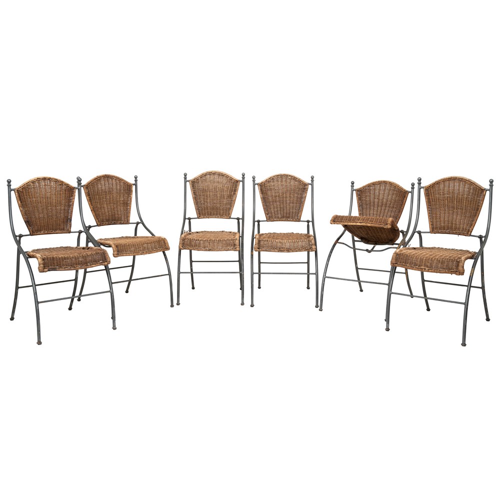 DODICI SEDIE da giardino richiudibili con struttura in ferro, seduta e spalliera in rattan.