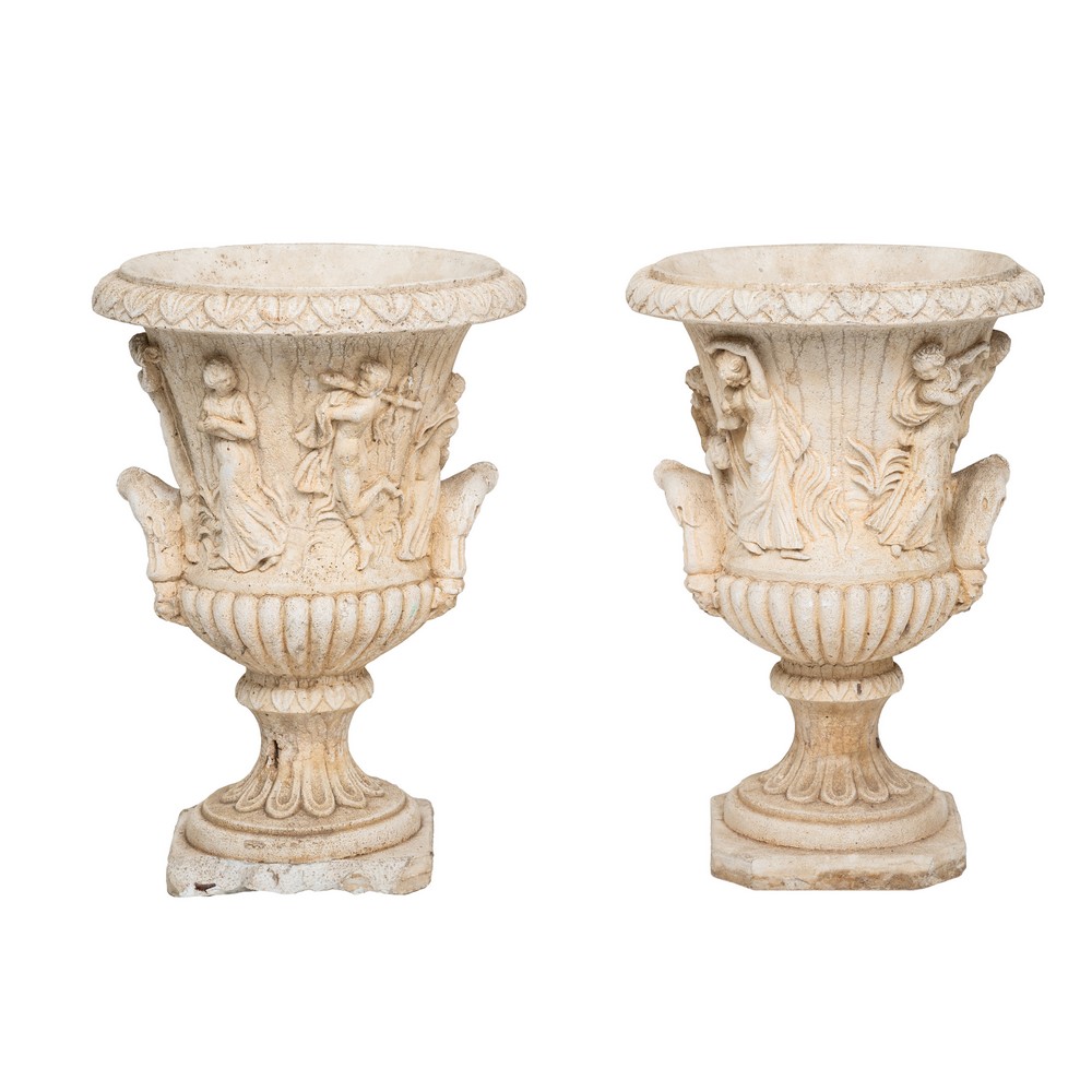 COPPIA DI VASI a cratere in graniglia di gusto neoclassico (mancanze e difetti).