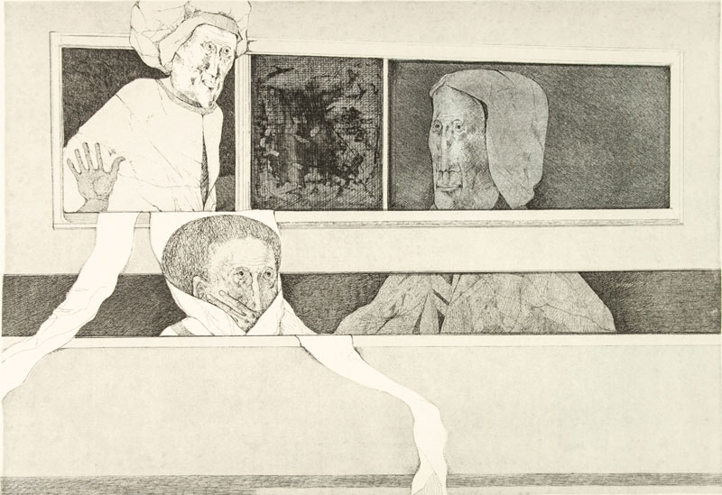 Karl Plattern (1919-1986). Personaggi alla finestra. 1973. Acquaforte a tre...