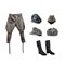 Quattro copricapi, coppia di stivali e paio di pantaloni.