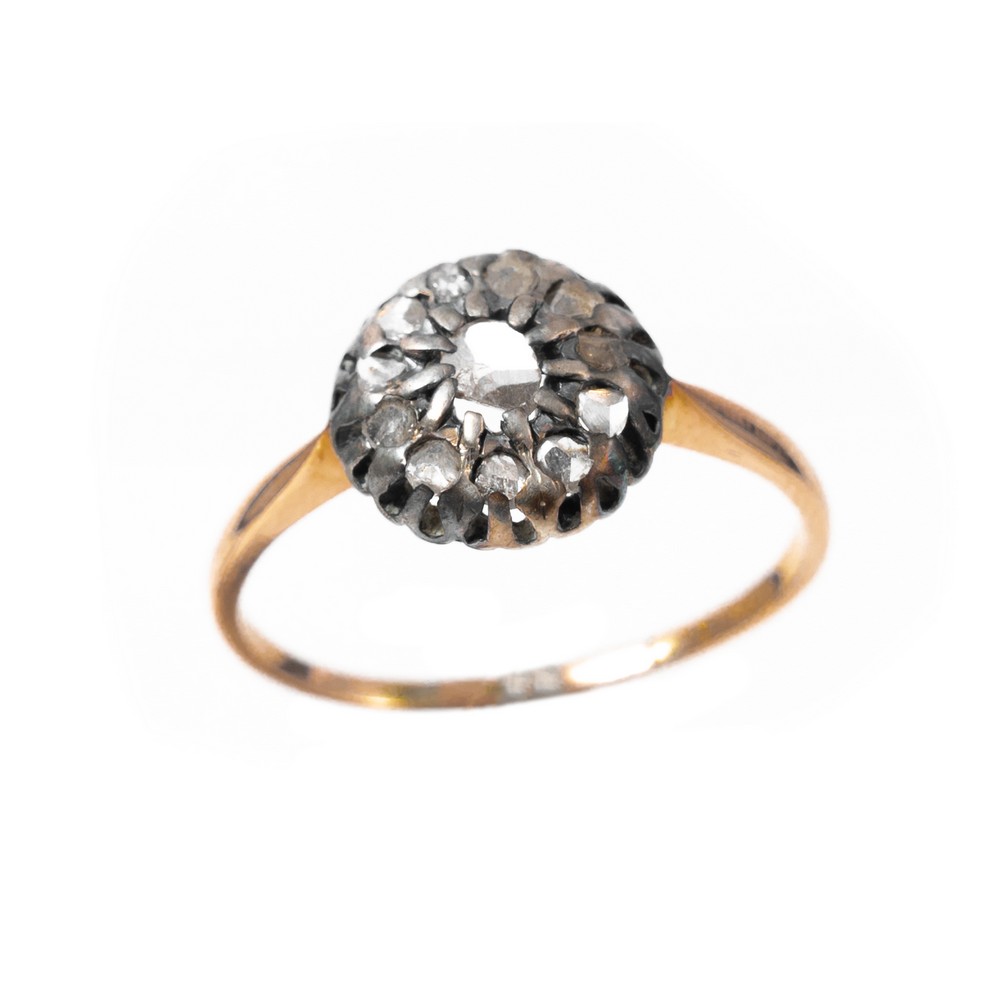 ANELLO in oro giallo 12 KT e argento con diamanti ct. 0,10 (gr. 2,20).