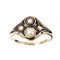 ANELLO in oro giallo 18 KT e argento con diamanti ct. 0.05 e perla coltivata (gr 3,00).