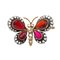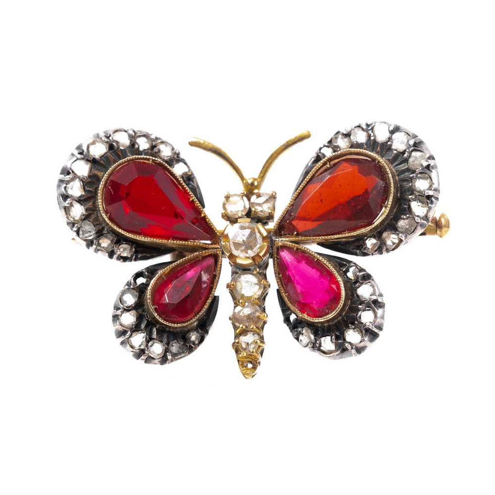 SPILLA a forma di farfalla in oro giallo 12 KT e argento con diamanti ct. 0,20 e pietre di sintesi (gr. 13,10)