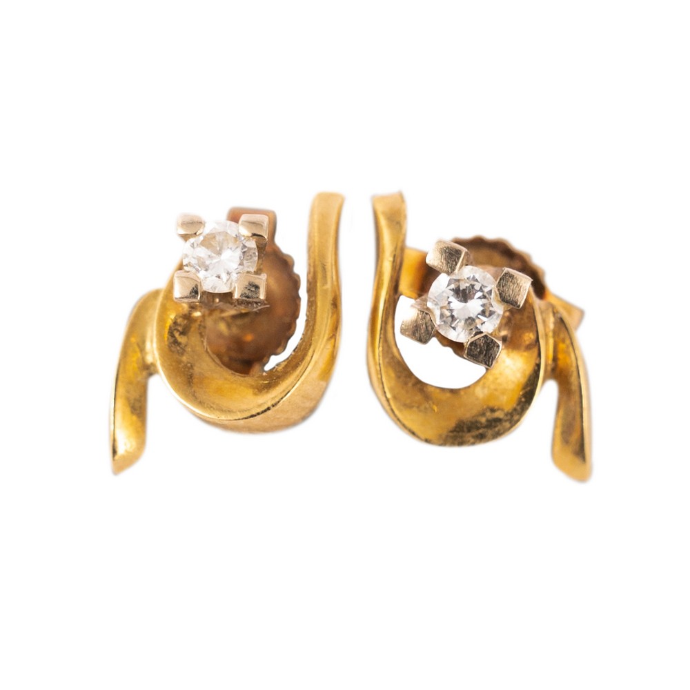 ORECCHINI in oro giallo 18 KT e diamanti taglio brillante ct. 0,12 (g. 2,60).