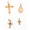 Ciondolo con diamanti taglio huit/huit ct. 0,07 (g. 1,60), ciondolo con pietre sintetiche (g. 1,20), ciondolo in corallo rosa (g. 1,60), ciondolo in corallo rosa lavorato (g. 1,70).