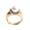 ANELLO in oro giallo e bianco 18 KT con perla coltivata e diamanti naturali taglio brillante ct. 0,20 I color VS2 (g. 8,10).