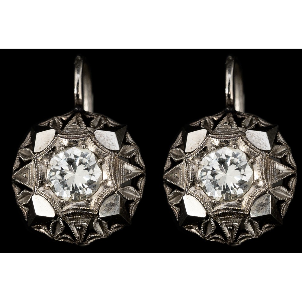 Anello con diamante vecchio taglio ct. 1,40 peso di stima, K color SI1 (g. 2,90) e orecchini con diamanti taglio brillante ct. 0,80 I color VS1 (g. 3,30).