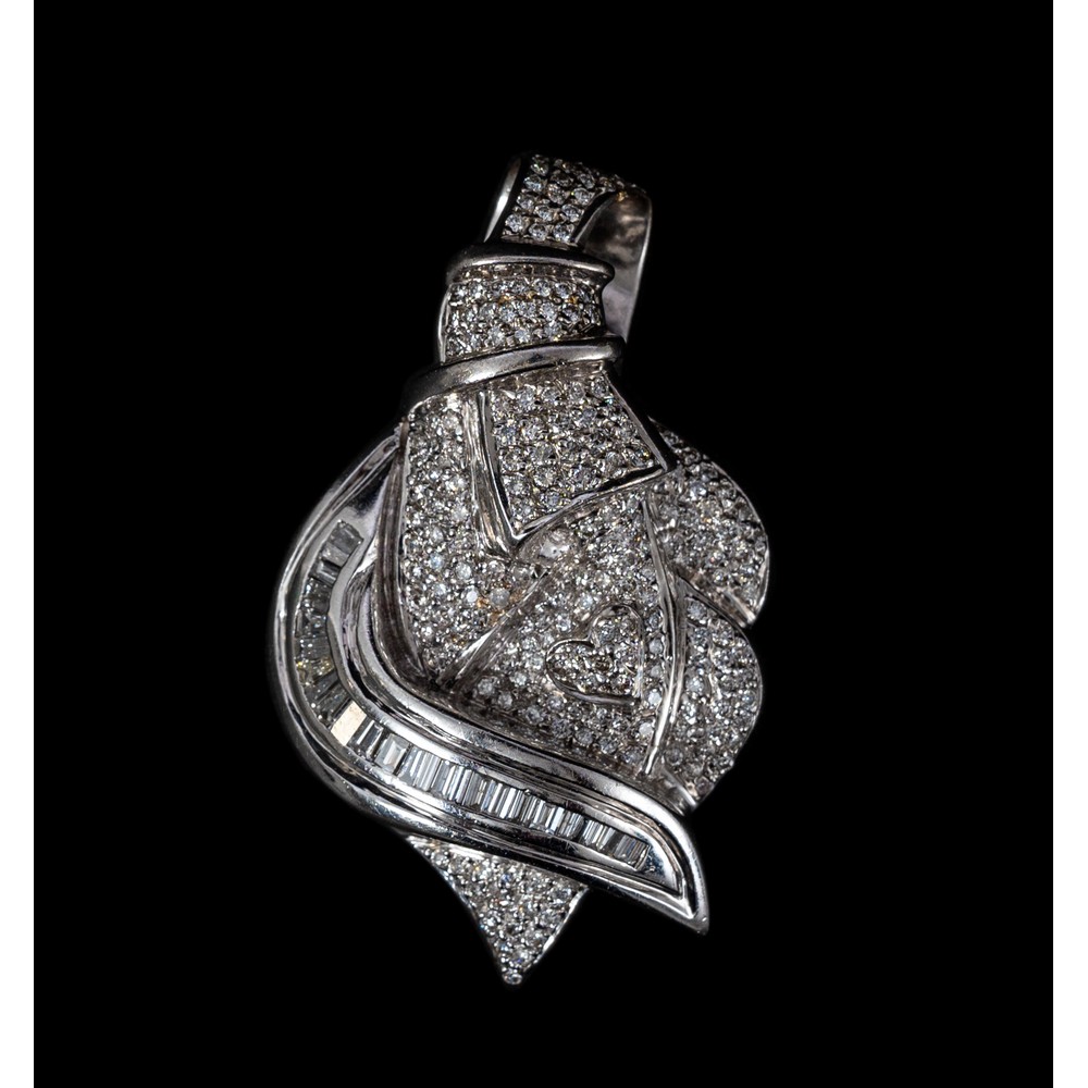 CIONDOLO in oro bianco 18 KT con diamanti taglio brillante ct. 3,00 peso di stima I color VS2 e taglio baguette ct. 1,50 peso di stima J color SI1 (gr. 28,90)