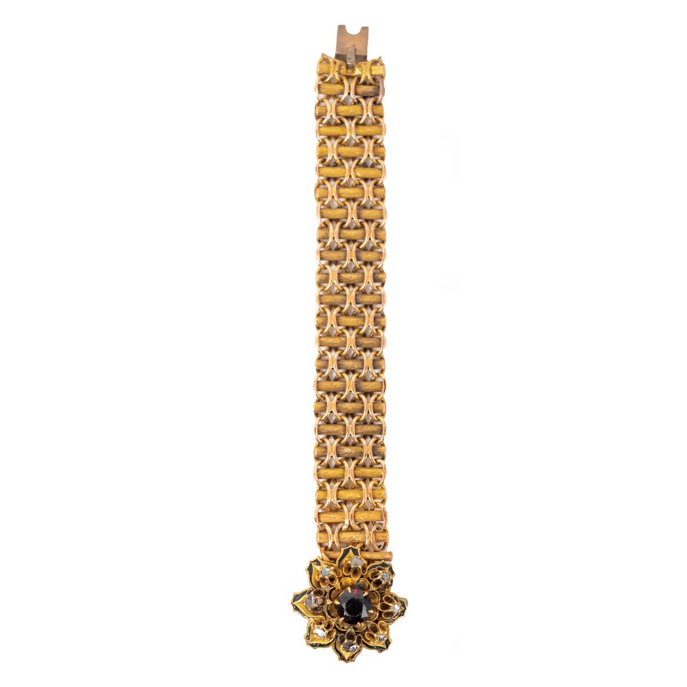 Lotto 306 | BRACCIALE in oro 9 KT con diamanti e granato centrale