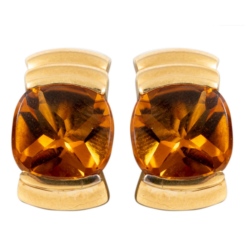 ORECCHINI in oro giallo 18 KT e quarzi madera (g. 13,70).