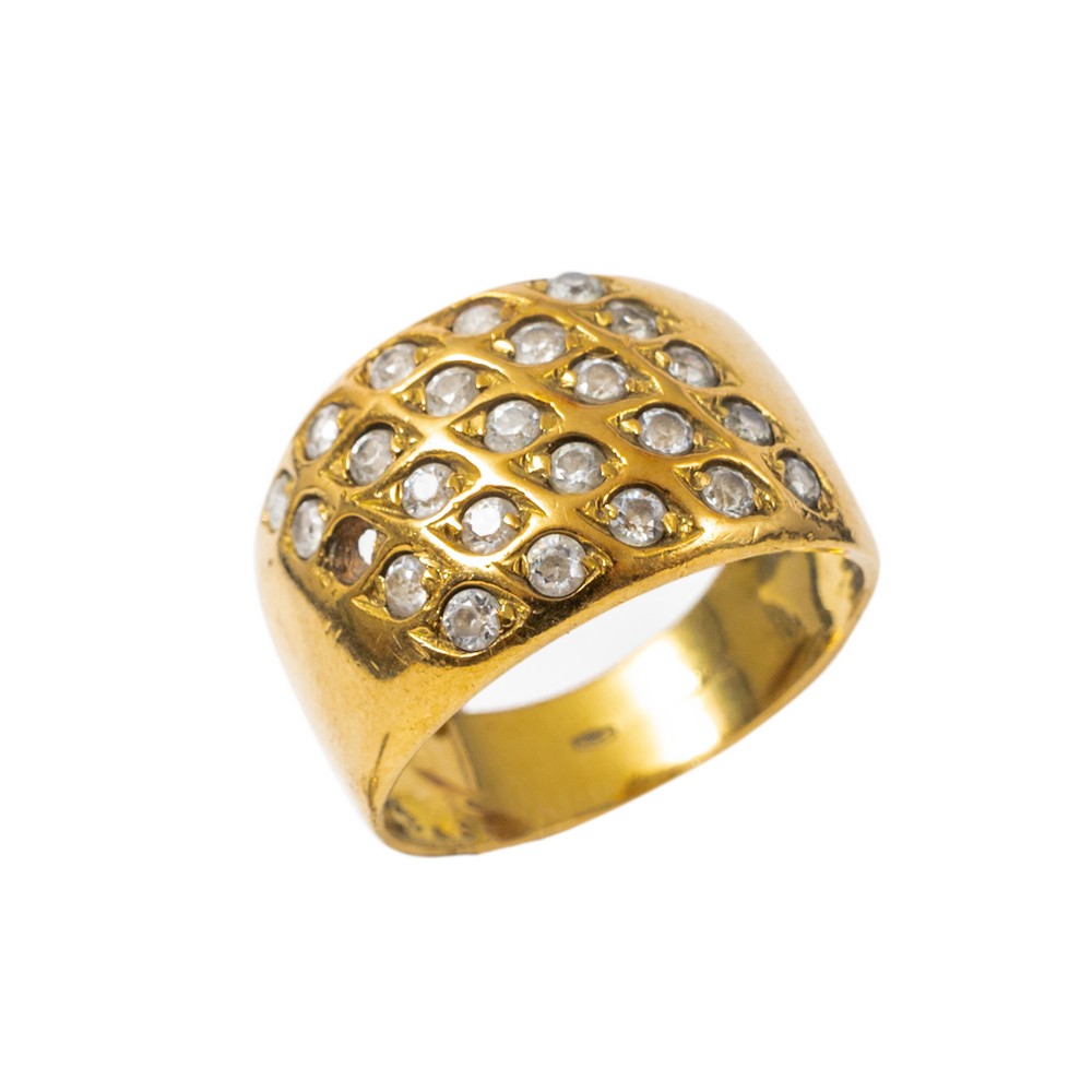 ANELLO in oro giallo 18 KT con zirconi (gr. 7,00) (un zircone mancante).