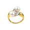 ANELLO in oro giallo e bianco 18 KT con due perle coltivate e diamanti taglio huit/huit ct. 0,02 (gr. 5,15).
