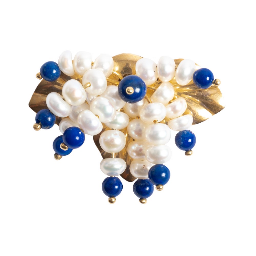 CIONDOLO in oro giallo 18 KT con lapis e perle biwa