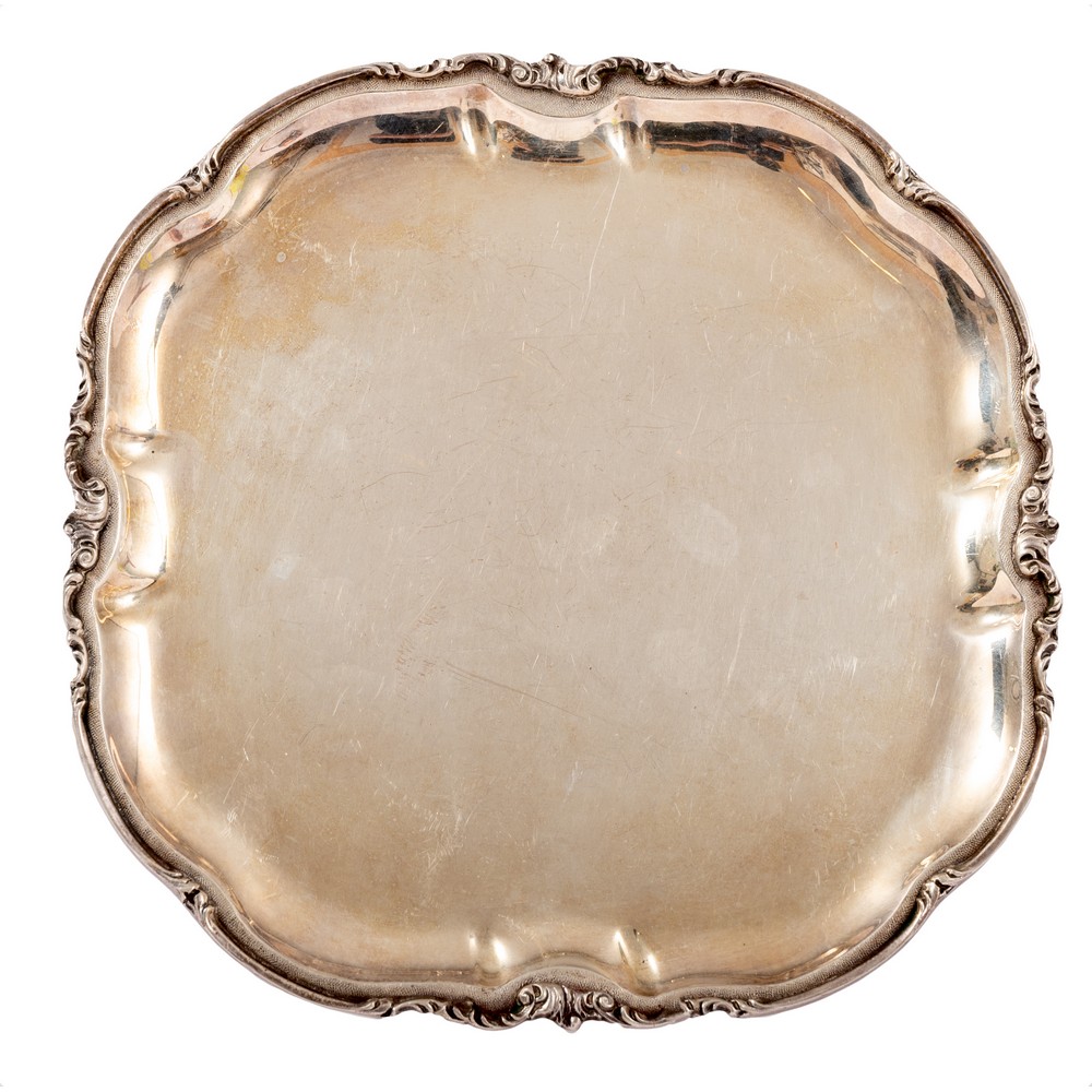 PICCOLO VASSOIO di forma sagomata in argento, bordo lavorato. Argentiere Mainardi Ettore - MIlano (g. 598).