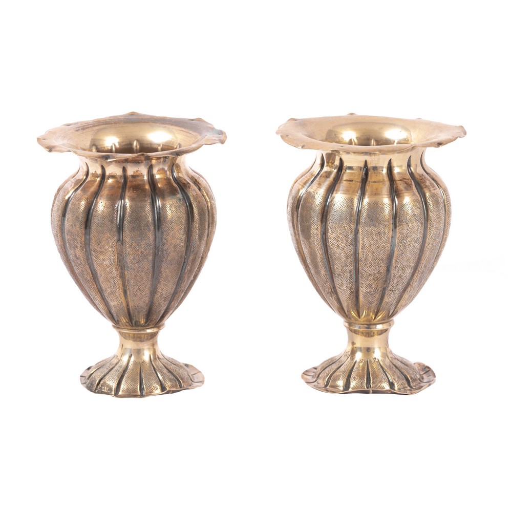 COPPIA PICCOLI VASI in argento sbalzato. Argentiere Dabbene - Milano (g. 277).