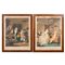 COPPIA DI STAMPE a colori raffiguranti Interno con personaggi entro cornici in mogano.
