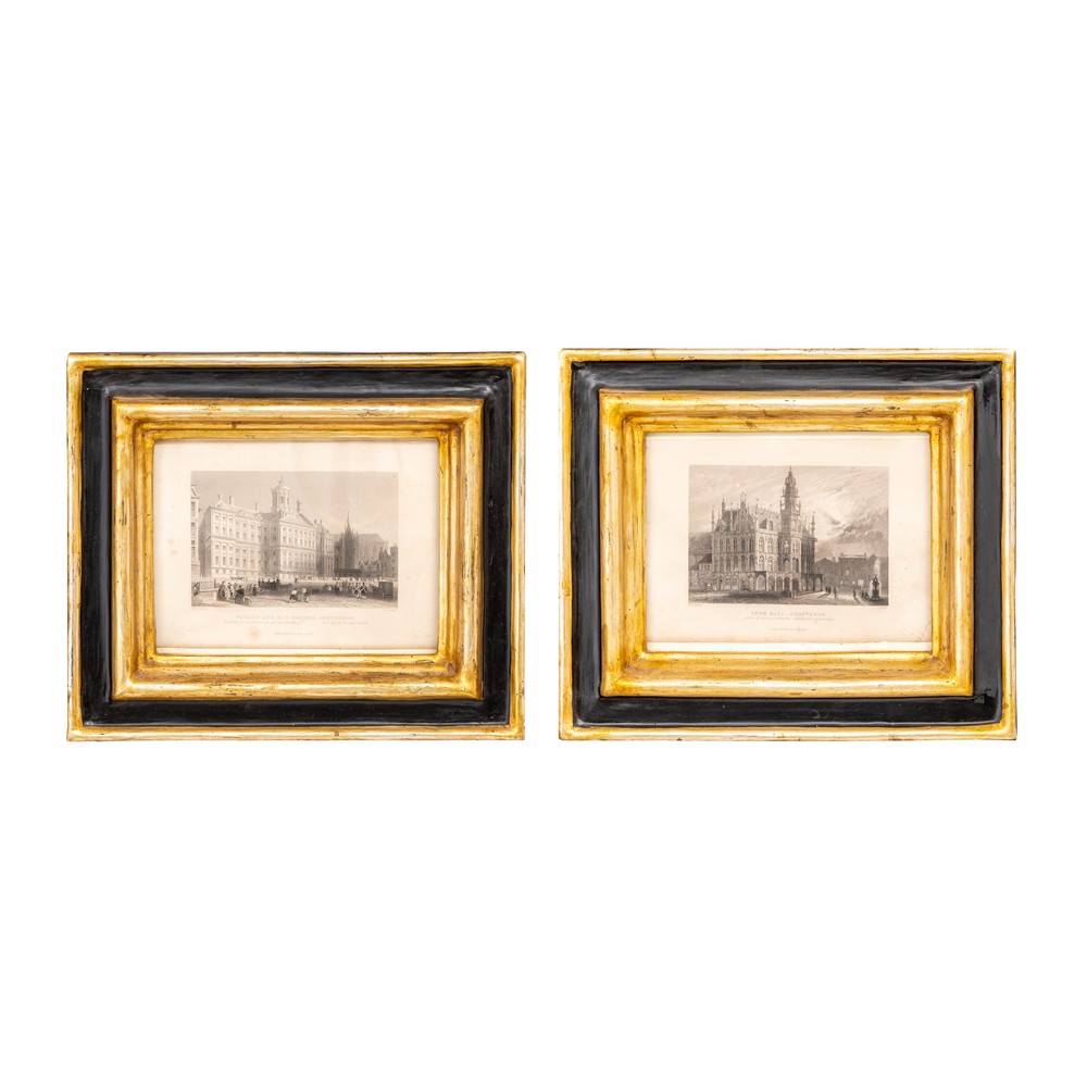 COPPIA DI CORNICI in legno laccato e dorato con stampe.