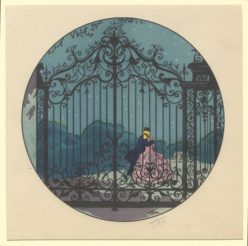 Ettore Tito (1859-1941). Quattro pochoirs. 1925 ca. Lotto composto da 4...