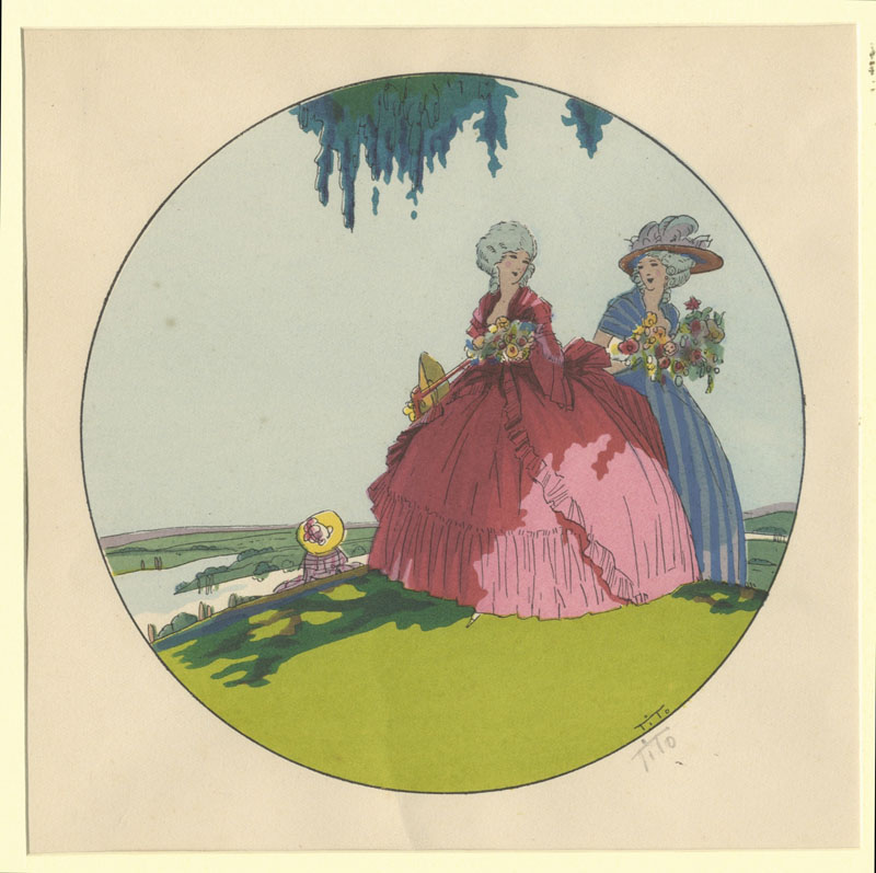 Ettore Tito (1859-1941). Quattro pochoirs. 1925 ca. Lotto composto da 4 incisioni colorate au pochoir. Diametro: mm 132 ca. (ciascuno). Foglio: mm 162x162 ca. (ciascuno). Tutti firmati sulla lastra e a matita in basso a destra. Belle impressioni con ottima colorazione stampate su carta avorio. Ottima conservazione.