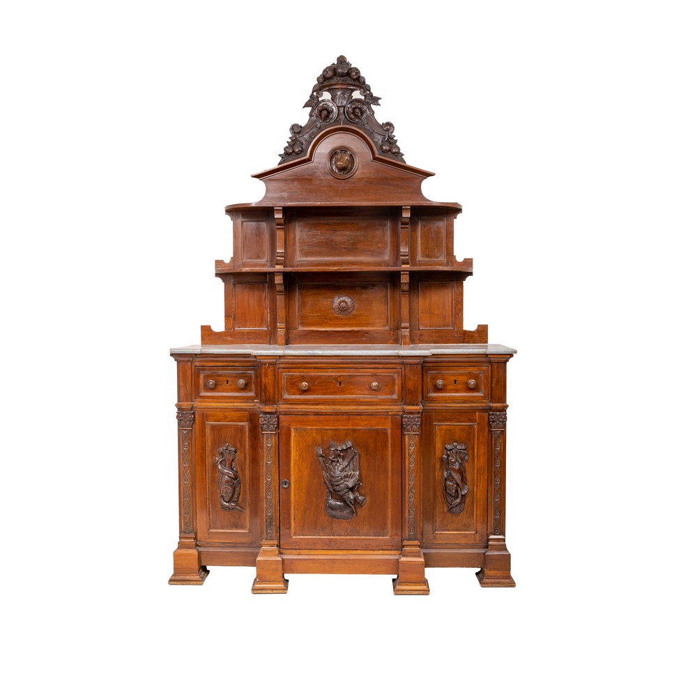 Lotto 559 | PIATTAIA a tre ante e tre cassetti in legno di noce