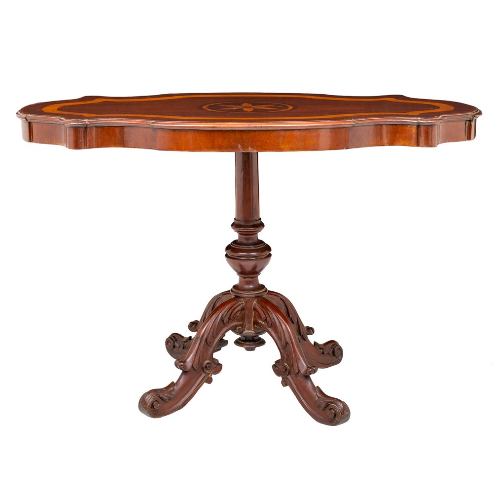 TAVOLINO LUIGI FILIPPO di forma sagomata in legno di mogano.