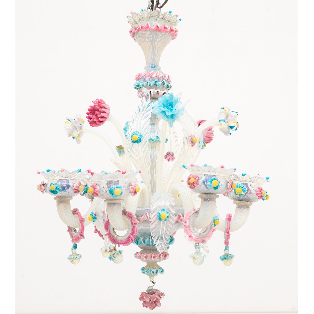 LAMPADARIO in vetro di murano a sei luci nei toni dell'azzurro.
