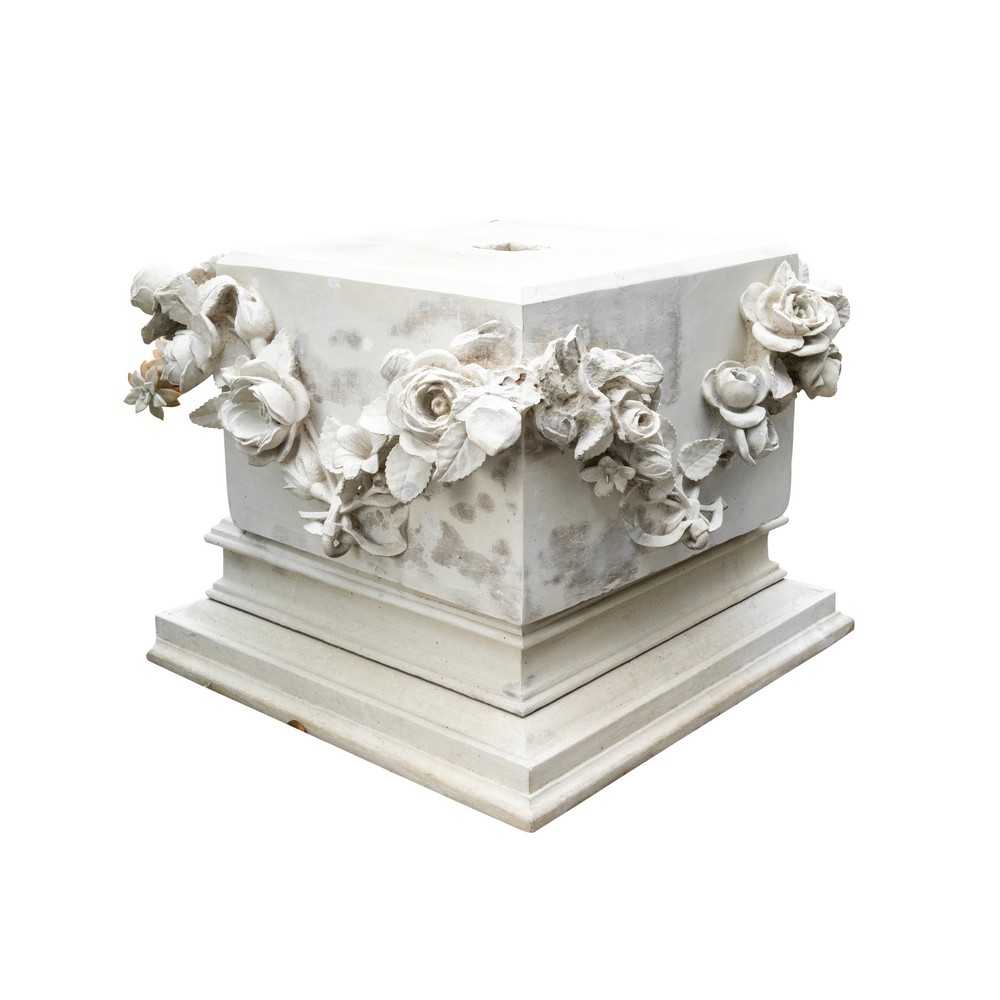 BASE LIBERTY in pietra con decori a motivo fogliaccio e floreale.