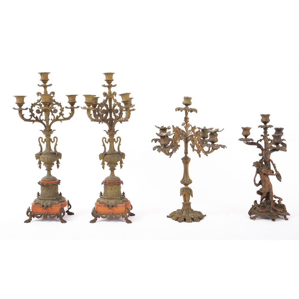 QUATTRO CANDELABRI in metallo (difetti).