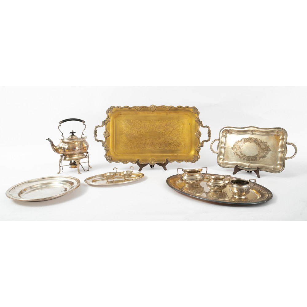 Tre vassoi, un samovar, due lattiere, vassoietto christofle e un piatto da portata.