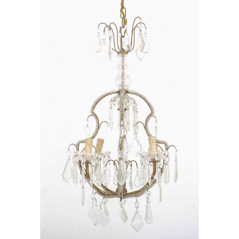LAMPADARIO a quattro luci in vetro e brindoli.