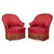 COPPIA DI POLTRONE rivestite in tessuto rosso damascato.