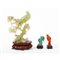 Gruppo in giada raffigurante volatile, scultura in turchese raffigurante saggio e scultura un corallo (difetti).