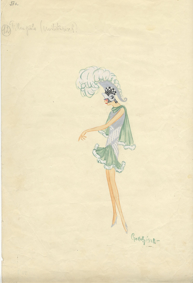 Ladislas Czettel (1904-1949). Tiller girls (Militarish). 1928. Gouache, tempera d'argento e matita. mm 455x315. Luerti, 88. Firmato in basso a destra. Titolo a matita in alto a sinistra. Bozzetto di costume per le Folies Bergère (La grand Folie). Ottima conservazione.