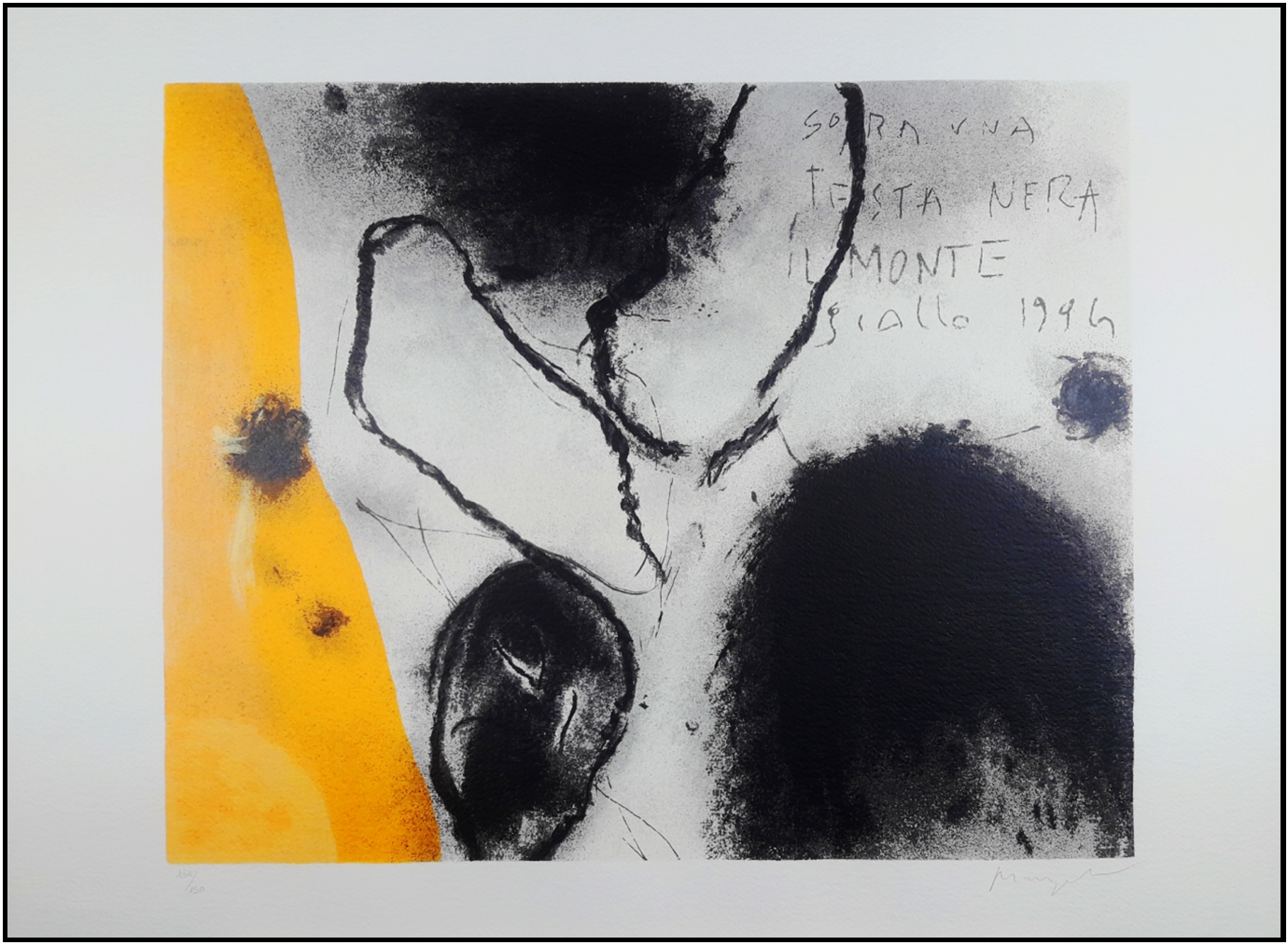 ARCANGELO (ESPOSITO ARCANGELO) Avellino 1956 "Cade la luna prima del giorno" Serigrafia materica a 20 colori su carta Fabriano gr. 300, cm 76x56, del 1994. Firmata a matita sul fronte in basso a destra, tiratura 138/150 e timbro a secco a sinistra.