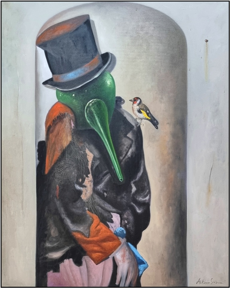 SCIACCA ANTONIO Catania 1957 "Senza titolo" Olio su tela cm 80x100 del 1999. Firmato sul fronte in basso a destra e sul retro. Autentica su foto a cura dell'artista.