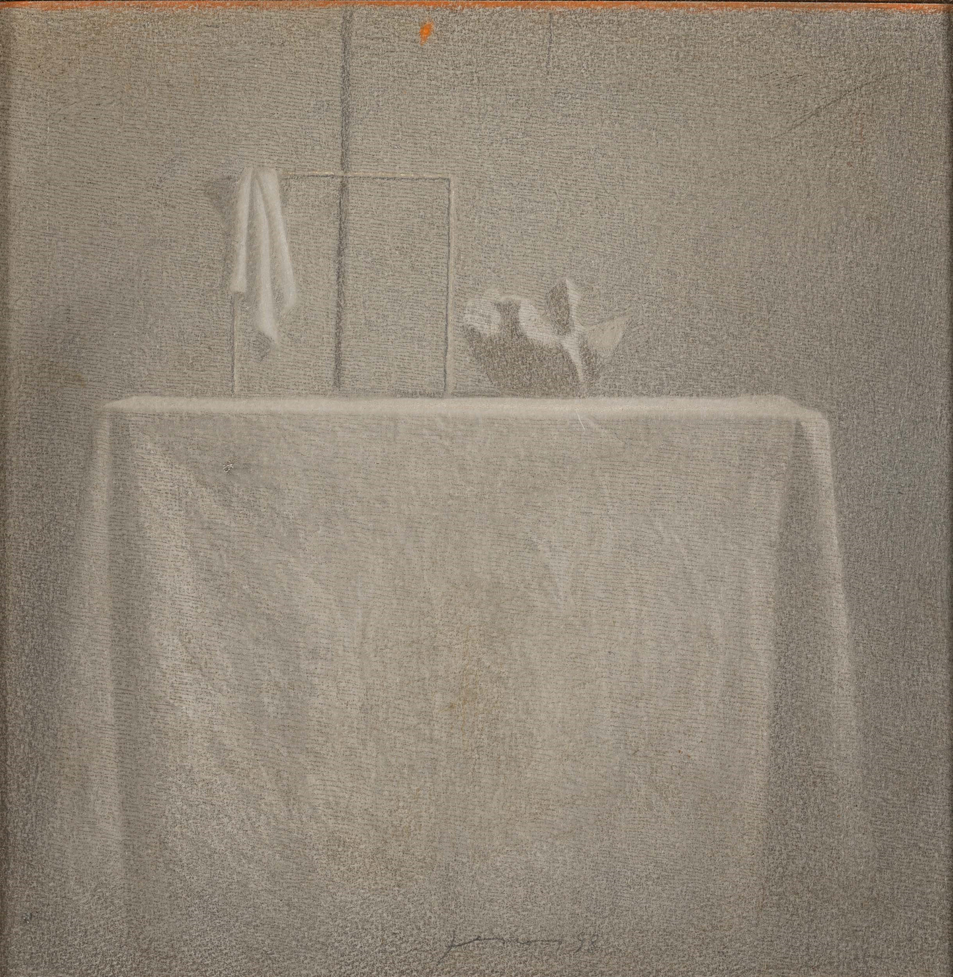 Gianfranco Ferroni, Cartoccio e straccio sul quadrato, 1998