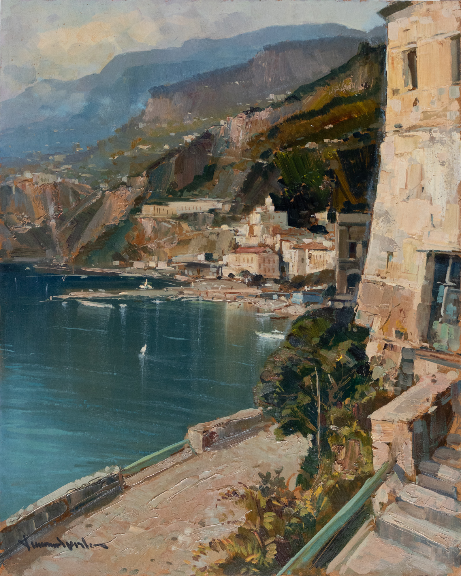 Lotto 1 Successivo Giosi Casa d'Aste - Via Atri 37, 80137 Napoli Dipinti XX Secolo Asta N3 mercoledì 21 dicembre 2022 ore 15:00 (UTC +01:00) Vincenzo Aprile (Napoli 1952) Vincenzo Aprile (Napoli 1952), Amalfi, Olio su faesite, 50x40 cm.
