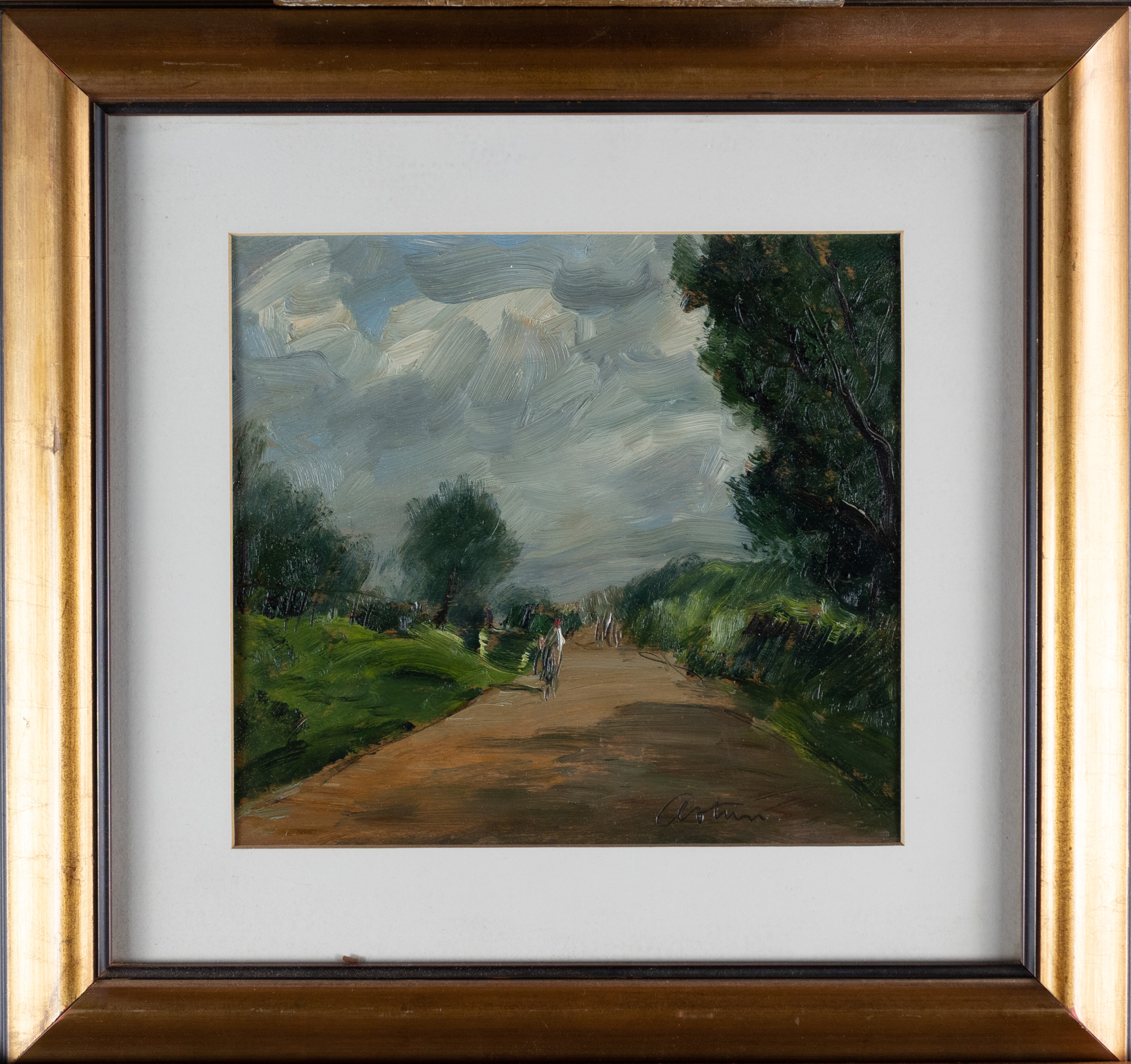 Antonio Asturi (Vico Equense, NA 1904 - 1986), Al parco, Olio su tavola, 21x23 cm.