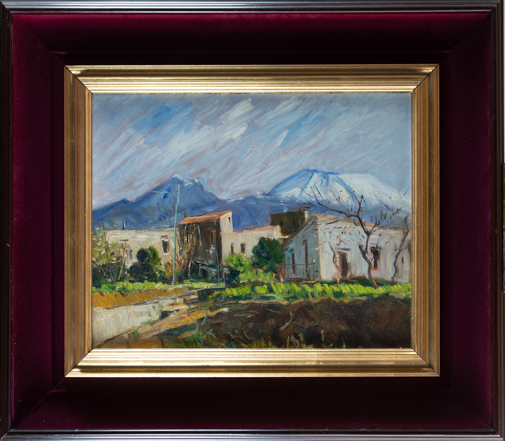 Armando De Lauzieres (Portici 1943), Verso S.Vito al vesuvio, Olio su tavola, 49x39 cm.